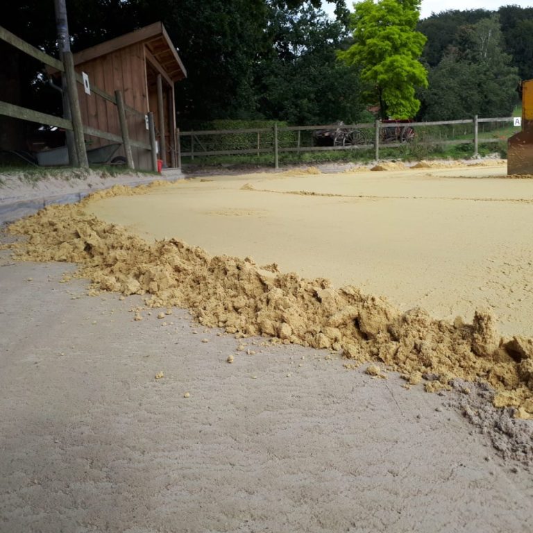Übrigens: Je nach Beanspruchung sollte regelmäßig eine lasergesteuerte Bearbeitung und Auffüllung der Tretschicht des Reitbodens durchgeführt werden. Wir empfehlen dies in der Regel 1x im Jahr.